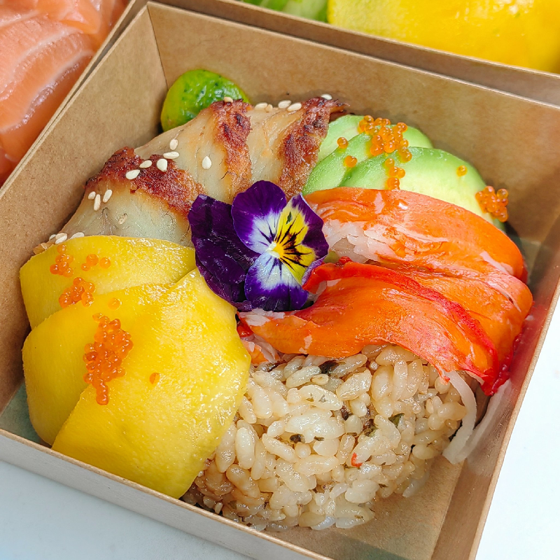 Use molds or your hands to shape the seasoned vinegared rice into donut rings. Create your own topping: top with thick slices of salmon, soft slices of avocado, sweet mango chunks, or rich grilled eel. Drizzle with a special sauce, such as mayonnaise, teriyaki sauce, or yuzu pepper sauce, to further enhance the flavor.